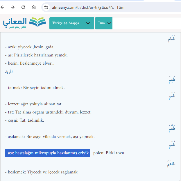 ta’âmin kelimesinin anlamı: aşı, aşı maddesi