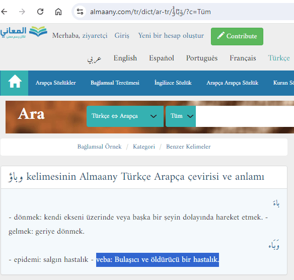 vebâû وَبَٓاؤُ۫ kelimesinin harekesiz olarak anlamı: Epidemi, Veba