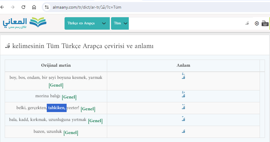 قَدْ kad kelimesinin anlamı