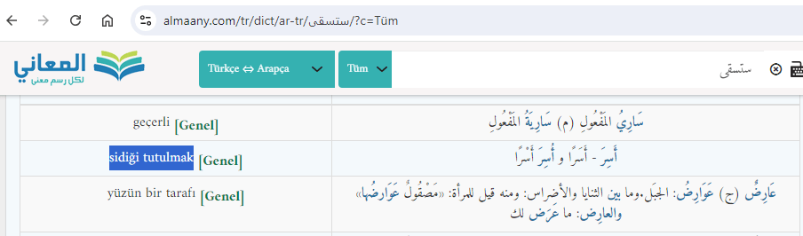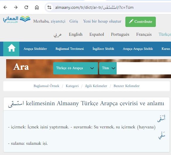 استسقى (istiskā) kelimesinin almaany sözlükte karşılığı