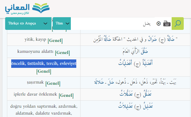 يُضِلُّ yudillu kelimesinin anlamı: