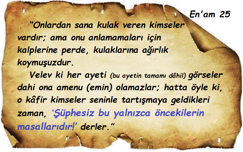 (En’am 26. Ayet) Eskilerin masalı demekle kendi kitaplarını da masal yapmış olmazlar mı? Görsel• Gönderi tarihi 16 Mayıs 202525 Ağustos 2025 Profile tarafından